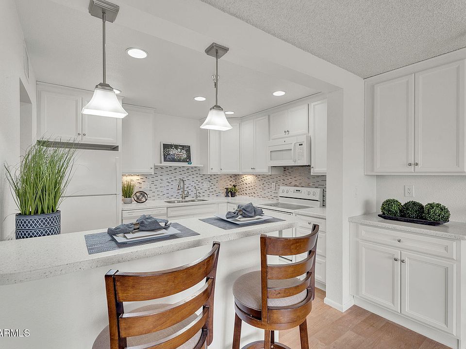 Beautifully updated end-unit condo in the highly desirable Sunland Towers, a premier 55+ active adult community in Mesa, Arizona! This move-in ready home offers a remodeled kitchen with modern finishes, gorgeous vinyl flooring throughout, and an open-concept layout filled with natural light. The oversized sliding door leads to a large private patio perfect for relaxing or entertaining. Enjoy peace of mind with a newer A/C system and access to resort-style amenities including heated pools, spa, tennis, pickleball, golf, and vibrant community events. Centrally located near shopping, dining, and medical care, this is Mesa's ideal low-maintenance desert retreat!