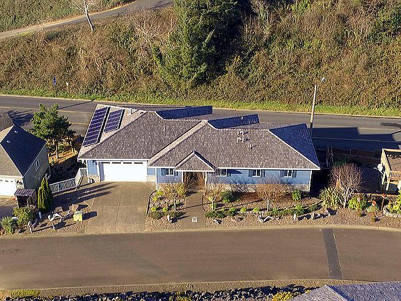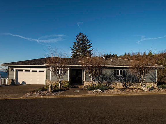 Spacious home in central Newport has views of Yaquina Bay and Bridge to the ocean and offers single level living! Main level has an open plan kitchen/dining/living with wall of large windows and gas fireplace, covered deck, Master suite with deck, den/office/nursery, laundry and half bath. This home has 6 bedrooms, 4.5 baths, 2nd floor family room w/ wet bar, theater room and ground floor family room that opens to a covered patio w/ jetted hot tub and fenced back yard w/ custom play structure. Home theater has a movie projector, 106'' screen, surround sound and platform for stadium seating. Custom finishes include hickory flooring, maple cabinets, granite, travertine, marble, onyx, heated floor in master bath and hard-wired sound system. Motivated Seller will consider all reasonable offers