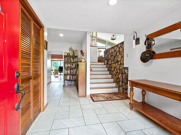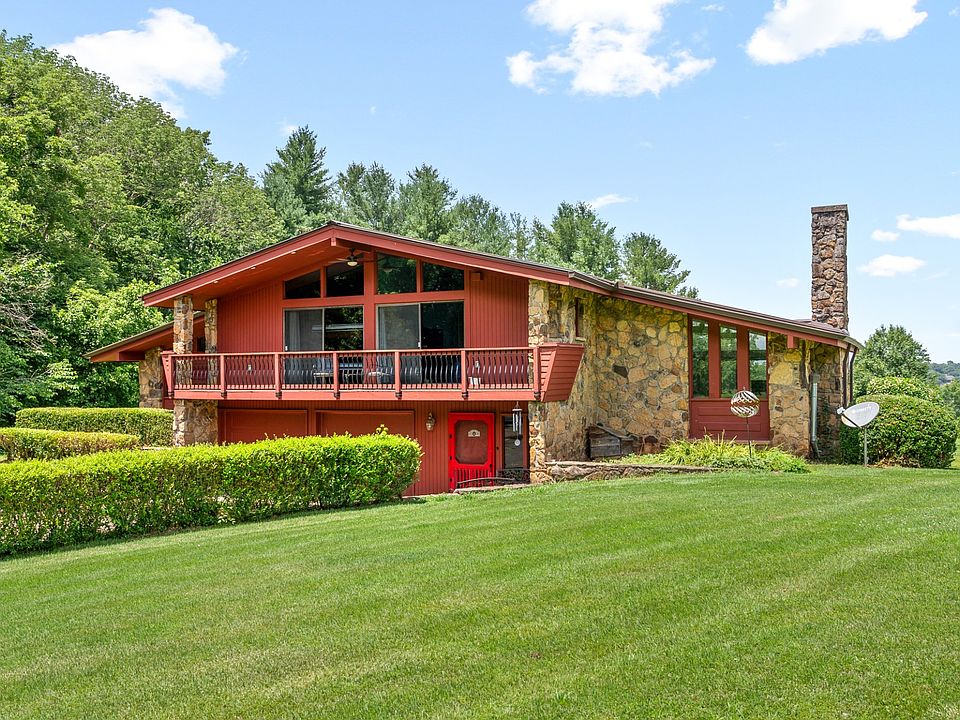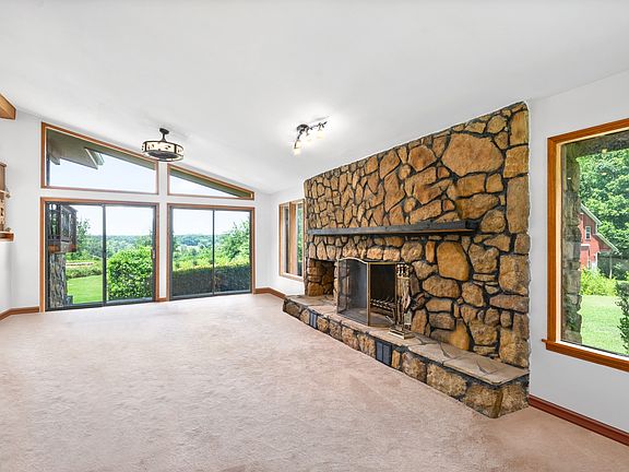 Experience luxury living in this Frank Lloyd Wright-built contemporary style home on 18.89 acres. Features include a sunken living room, walk-down master bedroom, cobblestone fireplace, & a full-length terrace/glass windows and doors. Each en suite bedroom has a full bathroom and private deck, the master overlooking the pool area and riverfront. The orchard w/peaches, pears, apples, cherries, apricot tree, blueberry bushes, & a crabapple tree, all within a 6-foot fence. Enjoy a separate small vineyard, a swimming pool with a 12-foot deep end, & a beehive and chicken coop. The walkout basement leads to a patio with access to the terrace & a walkway to the pool. A hidden driveway guides you through a wooded area, leading to this oasis. The property includes a fully electric three-story barn with access on both ends. At the riverfront, there’s a cleared picnic area shaded by beautiful trees. This unique home blends architectural brilliance with extensive outdoor amenities.