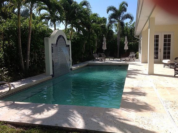 Elegant Georgian HomeLarge Island Kitchen and Breakfast NookLiving, Dining, Family Rooms, and StudyLanai with pool and waterfall (installed 2010) and natural coral stone deckStamped Concrete cobblestone driveway, walkways and porchesTwo Story with many closetsProperty encased with a ficus and podicarpus hedgeBlocks from the OceanClose Proximity to A rated schools and shoppingCrown molding and wainscoatingGas stove, water heater and fireplaceNew Roof