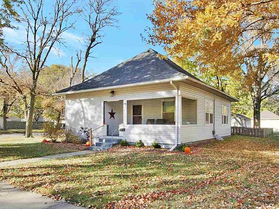 Are you looking to move out of the hustle and bustle of the city and into small town living? Look no further than this charming house in Halstead! Nestled in a tree-filled neighborhood is this charming 3 bedroom, 2 bath home with an additional bonus room in the basement ready for your hobby station, office, or guests! Original wood floors exist in the original part of the house with carpet in the upstairs hallway and 2 bedrooms. A very large closet off the main bedroom on the main floor doubles as a convenient laundry room. The kitchen has been updated recently with an island and plenty of cabinet storage. Out front is a covered porch with windbreak from the west and south as well as a porch swing. Out back is a brick patio with a custom fire pit located safely away from the house, tool shed, and detached 1-car garage. A privacy fence encircles the back yard which has plenty of room for a swing set or other play equipment. Inside, the basement has been freshened up with new walls, flooring and paint. Waterproofing has been done to the basement perimeter to prevent flooding from groundwater, and the warranty for that work is transferable to the new owners. The neighborhood streets in Halstead are wide and walkable, with some brick streets still remaining! Halstead schools have great ratings,, too! Are you hesitant because maybe it's too far from shopping and the conveniences of the bigger city? Think again! Halstead is about a 15-minute drive to Newton and 30 minutes to west Wichita and Hutchinson. In Halstead you'll find a "mom and pop" grocery store, gas station, hair salon, barber, thrift shop, hardware store, diner, pizza place, sandwich shop, automotive repair shops, co-op, public swimming pool, post office, banks, library, park, and more! Give small-town living a try in historic Halstead, Kansas