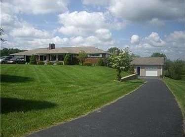 Well-maintained ranch located on two scenic acres with picture perfect views! Attention all golfers- property borders Ridgeview Golf Course!!! Come home and relax on the rear deck, in the hot tub, or built in sona. Home has gas log fireplace in living room and a wood burning fireplace in the family room.