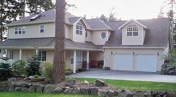Elegant waterfront home includes low-bank south exposure beach with the tidelandslocated just 2 miles West of the Hood Canal Bridge on Shine Road. Two masterbedrooms w/great water views, full baths & walk-in-closets. Large bonus room over atwo car garage. Cozy room with propane fireplace. Elegant dining room. Custom oakcabinets. Large patio and decks. RV parking with dump. Jog, collect seafood, on yourbeach and fish for salmon and crab on sunny Squamish Harbor, your front yard.