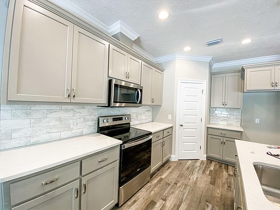 New Construction - Over 1 acre lot Beautiful new home built with 4 bedrooms, 2 bathrooms. Interior features LVP flooring through main areas of house, stainless steel appliances in kitchen, & large kitchen island. Master bath includes double vanity, large walk-in tile shower, and master closet with shelving already installed. Exterior of home features brick siding, large 1-acre lot, & 2-car garage.