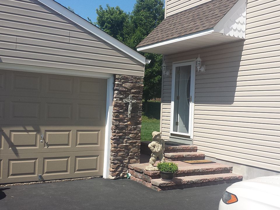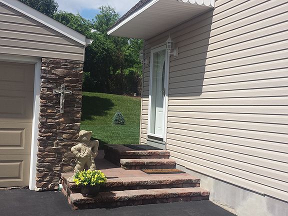 PRIVACY, PRIVACY, PRIVACY! Oversized corner lot, end of the street with oversized paved driveway and a 2-car detached garage with new roof, stone work and dryvit exterior only 3 years old electric garage doors... trees line the front for added privacy. 3 Bedroom/3 BATH, central air conditioning, wall to wall carpeting, freshly painted, new roof, family room with coat closet, tile at entry way. Large Family room, (with full bathroom with tile floor stall shower), dining room, living room with wood-burning fireplace, large eat-in kitchen with plenty of cabinet space, deep under mount sink, dishwasher w/stainless steel interior, bottom freezer refrigerator, granite counter-tops, granite 13 x 12 tile back-splash, under cabinet lighting, tray ceiling, pantry, all appliances (from 2006), laundry on first floor with Washer & Dryer and a wash tub, cabinets for storing your rags, laundry needs, etc.) and an area to hang and dry your clothes, fully painted basement with plenty of storage space, as well as a crawl space for additional storage. Ceiling fans in family room, living room, master bedroom and loft area. Cable hookup in all bedrooms, family room and kitchen. Surround sound wired in family room for added enjoyment while watching your favorite movie! Driveway paved in 2010. Heating/air conditioning units are cleaned/serviced annually. Filters changed every couple of months. Master BR: high hats throughout bedroom on individual switches, sitting/TV area and two person hot, heated hot tub with jets(there is a motor in the hot tub that keeps the water warm). Ceiling fans in both master bedroom and 2 in loft area. All ceiling fans work off of a switch or remote on a cathedral ceiling. Loft with shelving, large half-moon- picture window for plenty if light! Porch off of master bedroom with door. New bedroom wall/towel/cabinets. Must see this home!!!!