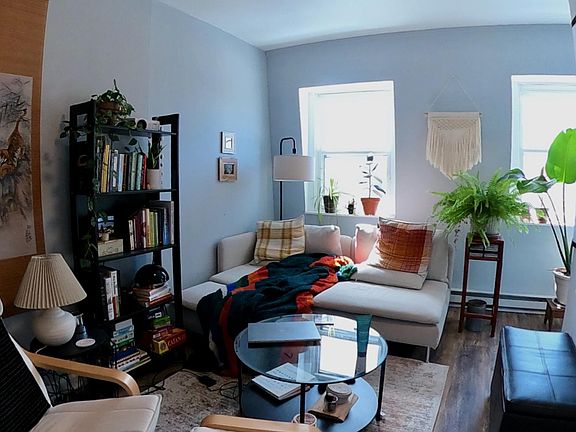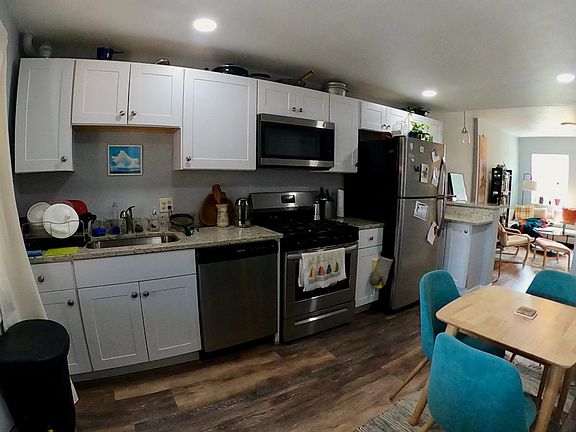 *Sept 1* Renovated top/3rd floor 2 bed 1 bath in Somerville's Union Square, right across from Market Basket. Fully applianced eat-in kitchen with newer shaker cabinetry, gas cooking, breakfast bar, and direct access to semi-private South-facing rear deck. Compact open concept floor plan with front-facing living room and lots of natural light. Perfect roommate layout with equal size bedrooms at opposite ends, and one armoire included in each bedroom. Would also work great as a 1 bed + office/guest bed. Very convenient location near the new Union Sq Green Line station, 85 bus which goes to Kendall/MIT, 87 bus to Lechmere/Davis Sq/Arlington, 91 bus to Central Sq, plus great bike infrastructure. Close to lots of shops as well as some of the best and most diverse food Greater Boston has to offer. Easy to show with 24hrs notice. Water/sewer included; tenants pay electric, cooking gas, cable/internet. Electric, which includes heat, ranges from $100-200/mo. Laundry in building. Cat friendly. 12mo lease