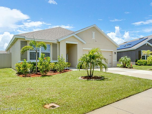 Why wait for a new build - finished in 2020? This DR Horton smart home has it all!This beautiful, cozy 3-bedroom, 2-bathroom Aria home built in 2020 features a large kitchen island, ceramic tile in all wet areas, 36'' upper cabinets in the kitchen, huge walk in closets, stainless steel appliances, Smart Home Technology, window treatments throughout, irrigation system, trussed roof porch and more! Control your front lights, garage, and AC through smart home technology, including a security system with cameras and monitoring. You'll have peace of mind as this energy efficient home includes a 10-year structural warranty with 7 years remaining. Plus, the home is built to the latest building codes and has hurricane shutters for all windows! It is also centrally located to d