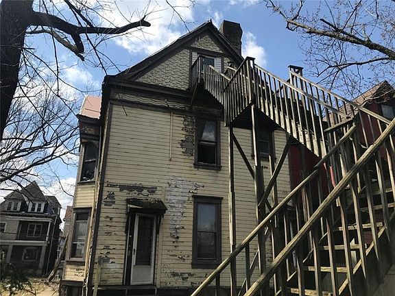 3 unit building with a detached garage. Covered front porch and level rear yard.