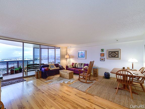 Come home to this tranquil oasis in the heart of Kakaako. This beautiful and cozy 1/bed/1bath unit features recently installed ceramic tile floors, electric window coverings, tasteful kitchen upgrades, smooth ceiling (popcorn removed), and expansive ocean, coastline, sunset, and harbor views. Pet friendly building (verify) with great amenities and ample visitor parking. Electricity for unit and common area are sub-metered and vary monthly. Seller to pay off assessment (estimated $2,000) at closing for new buyer.