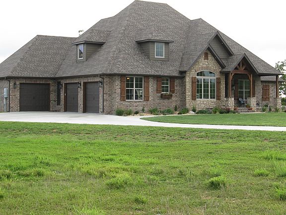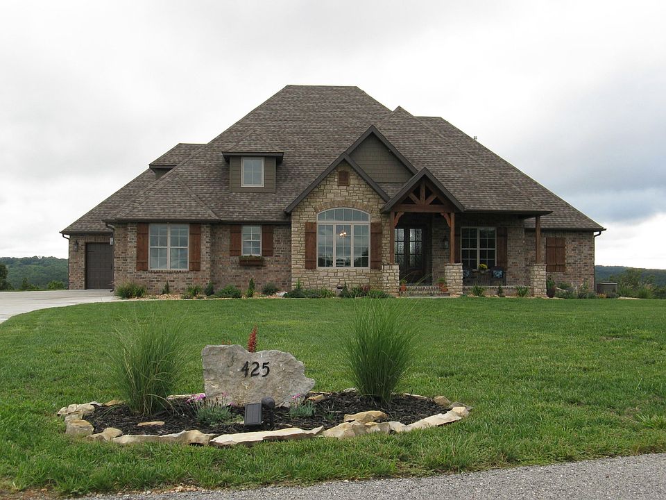 425 Sunset Drive - Saddlebrooke, MO 65630 - Custom French Country build on a 1.4 acre lot on Sunset Hill - highest elevations in Saddlebrooke. Open concept features cherry cabinetry, rustic hardwood flooring, granite counters, tiled baths, and bronze fixtures. This contemporary split-plan 4BD/3.5BA/3CG provides panoramic views of the Ozarks. Covered front porch and 400sf covered concrete patio extend the living space to the outdoors. There's a separate living space w/a bedroom and full bath above the garage w/zoned HVAC. If your vision includes Peace & Tranquility, your wish has been answered. Saddlebrooke is a master-planned community, strategically located between Springfield & Branson on Bull Creek. Custom homes, swimming pool & tennis court, parks, convenient location. WATRUWAITNG4?