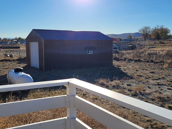 - Exterior Features: Patio- Covered, Deck(s) Uncovered, Storage Shed, View of Mountains, Fenced- Partial, Gutters & Downspouts, Faces: South, Topo: Level, Landscaping: Natural, Horses Allowed