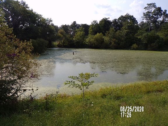 Earth sheltered home on 7.8 level to rolllng acreage with a pond on the property. Mature trees aroung the house. Large country kitchen and living room with a wall pass through. Living room has an attractive fireplace.i