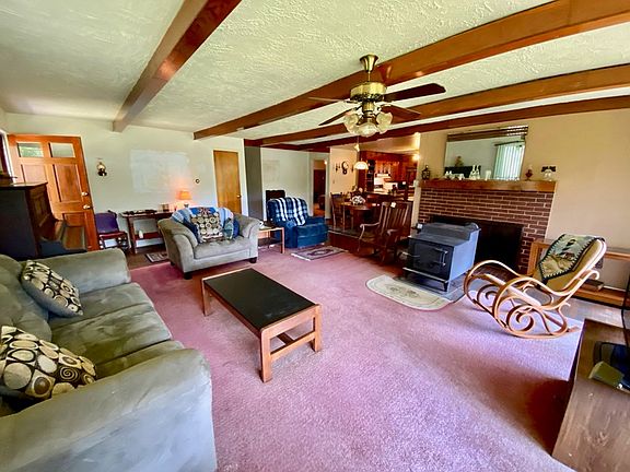 A great opportunity to own an affordable three bedroom, two full bath brick rancher on 3 acres in the country. This home features an open concept floor plan with a huge living room, dining area and kitchen! You will enjoy the view from the enormous bay window that also provides plenty of natural light to fill the entire living space. The adjacent den addition with fireplace is nice and cozy and could be a great office as well. All three of the bedrooms are comfortable and roomy highlighted by the primary bedroom that features and en suite full bath. In the evenings, you will enjoy the view of the sun setting over the hay fields from the front porch. There is a bit of work to be done to get it back in pristine condition but once completed, you could have a really great home that checks all of the boxes. Property sold AS IS. Make plans to see it today.