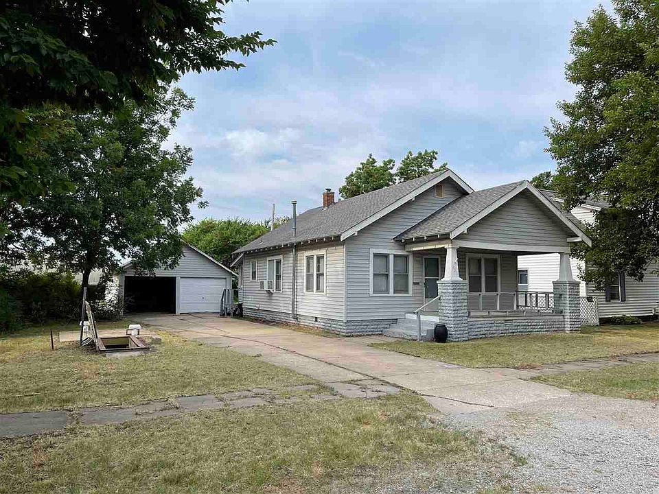 Nice two bed one bath bungalow on quite end of the street. two car detached garage and large storm shelter. large front sitting porch.