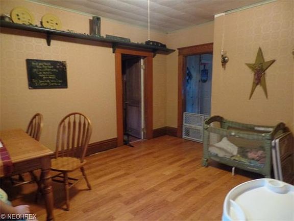 home is an older 2 story frame home with laminate flooring as well as some carpet in the upstairs bedrooms.