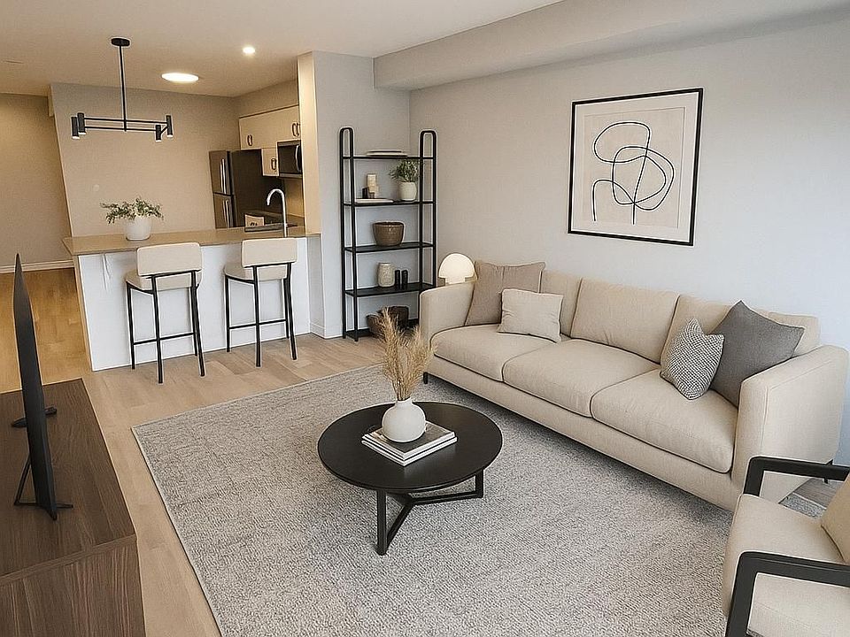 Cleverly designed living spaceBright open-concept layoutBig windowsAmple counter spacePrivate balconySpacious bedroomWalk-in closet