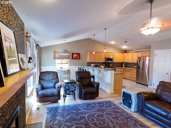 Easy living awaits you! Delightfully updated ranch on peaceful 10,000+ sq ft cul-de-sac lot. Welcoming great room w/fp, friendly granite & stainless kitchen w/eating bar & gas range, light filled dining w/slider, master w/private door to covered patio and remodeled bath w/gorgeous walk-in shower, fenced back yard, low impact landscaping, concrete RV parking, easy care vinyl siding, tankless hot water, central a/c, plenty of storage too!