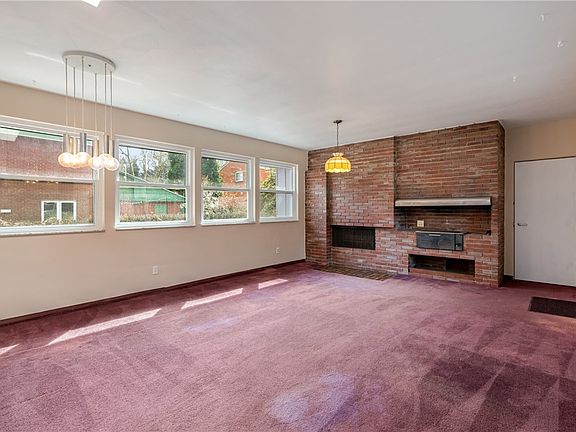Tucked at the end of a quiet, tree-lined street in Edgewood, this sprawling, brick ranch with a 2-car garage is a mid-century modern gem! A floor-to-ceiling brick fireplace anchors the living room, & the vaulted ceiling leads to clerestory windows flooding the space with natural light. Bring your vision to the galley kitchen that is primed for an open concept upgrade to the dining space. Flanked by windows, the 3-season room with globe pendant lighting has yet another fireplace to be enjoyed. The primary bedroom has an ensuite half bath + laundry, ready for a lux upgrade. A 2nd bedroom & updated full bath complete the main level. This house just keeps going! Lower Level: a family room, another bedroom & updated bath, flex space (4th bedroom/office/gym), & a large utility/workshop. A short walk to Koenig Field, CC Mellor Library, Edgewood Club, Regent Square's business district, & Frick Park! Easy commute to Downtown, East End neighborhoods & Bakery Square.