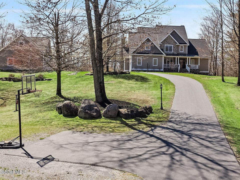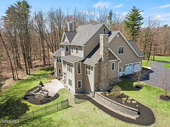 Stylish and sophisticated, this stunning oasis offers 8.49 acres of pure luxury living. This exquisite 4BR, 4.5 BA home on breathtaking grounds, provides a private and secluded retreat, perfect for those seeking tranquility and privacy. Open floorplan blends modern aesthetics with functional elegance. An entertainer's dream, the spacious layout offers ample room for hosting gatherings and events, indoors and outdoors. Superior finishes, designer lighting, furnishings, window treatments and upscale amenities, this home is like no other. Crestron Home Automation System offers complete Smart Home control remotely or from the dedicated panels. Fin bsmt w/rec area, home theater, 3 gas fireplaces, radiant heat, generator, firepit, add'l garage, the list goes on! 11 mins to Bway; Don't wait!