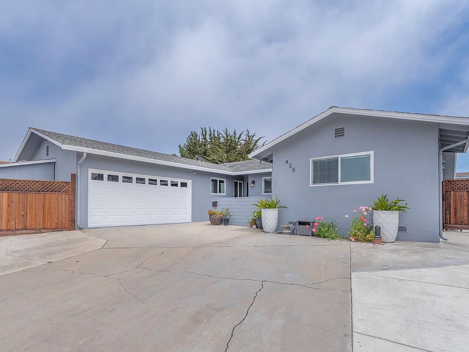 This meticulously remodeled home is a rare gem located on a quiet cul-de-sac in the coastal city of Marina. The house features 4 bedrooms, 2 bathrooms, a spacious dining room, a finished garage, and has beautiful floors throughout. The kitchen shines with its large garden window, attractive granite countertops, and stainless-steel appliances. The master bathroom boasts a large walk-in, dual head shower featuring a custom tile surround, as well as a freestanding, soaker tub. The oversized living room includes a wood-burning fireplace and opens out to a fenced, custom concrete hardscaped, low-maintenance patio that fully surrounds the property. The backyard has ample open space for gardening and entertaining. This immaculate home truly is exceptional and will not last long!