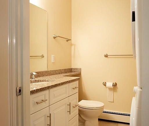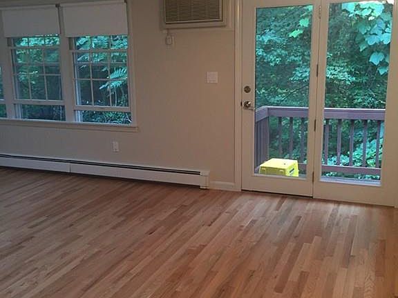 Spacious direct entry townhome in small apartment community with easy access to all major facilities and commuting routes. First floor has open living room/dining room combo with cathedral ceiling with skylight plus 1st floor den/bedroom all with hardwood floors., eat-in kitchen has been updated with granite countertops, tile floor, dishwasher, disposal, refrigerator, electric stove and microwave, full bath with shower stall and w/d on first floor. Second floor has master bedroom with walk-in closest, wall air conditioner, second bedroom and full bath with tub. Bedrooms and staircase are wall-to-wall carpet. Pull down staircase for extra storage in attic. parking for two vehicles .