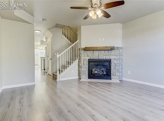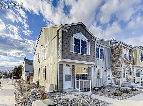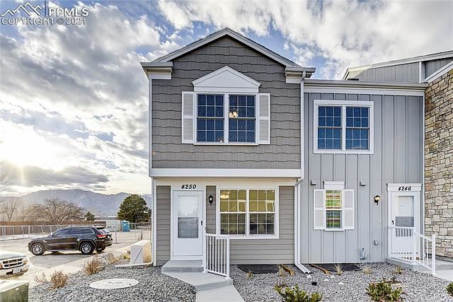 Fresh out of construction, this beautiful newly built townhome is a must-see! Nestled in the Sunstone area, this lovely gem sits on a corner lot. With everything new and fully vacant, this home is ready to fall into the hands of new homeowners. Consisting of three bedrooms, this townhome boasts two master bedrooms on the upper level, each of which has its own bathroom. Enjoy breathtaking views of the mountains from the upper west bedroom. Also, enjoy a finished basement whenever you need a getaway. A cozy bedroom in the basement can accommodate guests or friends. A full bathroom with a shower is available to be utilized for any of your occupants in the basement. All brand new stainless steel appliances to include refrigerator, stove, microwave and dishwasher are all included in this lovely townhome. With a zero scaped backyard, you won't have to worry about any lawn maintenance. Storage is available for most things you want to be stored outside. This townhome is in the perfect location and is located in south Colorado Springs. With it being approximately 15 minutes from Fort Carson Army Base, the commute can be a quick one. Need to travel across town The I25 is easily accessible for anyone needing to utilize it. Don't miss this opportunity, see it today!