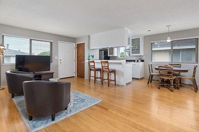 Capitola Shores is a wonderful community with a private pool, short walk to Capitola Beach and proximity to Pleasure Point. This charming 2 bedroom, 1 bath condo is a great starter home or investment property for those looking for an affordable option near the beach. It is located on the top floor, allowing the sun to beam through all the many windows. Extra love was poured into the details, making this truly a nice place to call home: bamboo flooring, marble counter-tops, and a tiled shower.