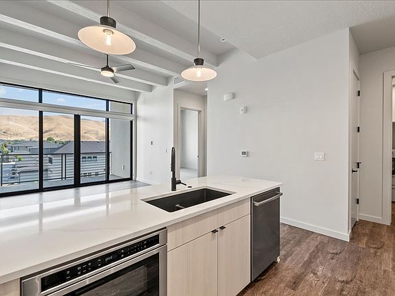 Southeast Boise Harris Ranch's newest addition, The Paddock. This luxury 2-bedroom 2-bathroom penthouse condominium has it all. Durable vinyl plank and tile flooring, Bosch Appliances and Quartz countertops. Enjoy unbeatable views of the foothills from the private balcony. Easy to entertain with the included community amenities: a rooftop patio with an outdoor kitchen, clubhouse and seasonal swimming pool. 10-minute drive to Downtown Boise and 2 blocks from the Boise River and Greenbelt. Washing machine and dryer are provided. Reserved covered parking. Tenant is responsible for power and wifi. No smoking. No pets except documented service animals. Available for immediate occupancy for $1800. Equal Housing Opportunity.