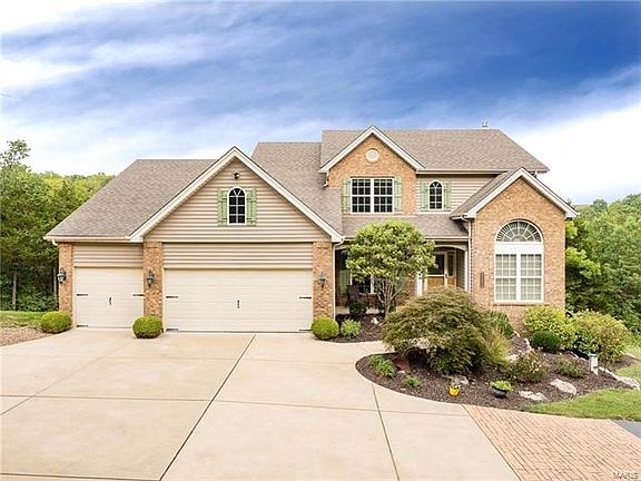 Stunning 3,000+ sq. ft. home nestled on peaceful 3.5 acres. Spacious DR off airy entry foyer featuring Travertine tile floors. Beautiful natural light views from Palladian windows featured in 2-story great room w/Brazilian cherry HW floors & floor-ceiling brick FP. Highlights in custom eat-in kit. include Travertine flooring, stainless appl. (incl. double oven), granite counters, tile back-splash, under-mount lighting & center island. Adjoining bfst. area leads to large secluded cedar deck w/afternoon shade. Mn. floor office is ideal for those who work from home. Large bay window w/forest views in expansive mn. flr. mstr. Master bath provides luxurious feel w/his/hers granite vanities, heated floors, glass shower & sep. corner soaking tub complete w/sizable cedar-lined closet. Eye-catching HW staircase leads to 2 bedrooms upstairs sharing a Jack/Jill bath & another en-suite guest room. Finished 3-car gar., central vac & outside fire-pit. Convenient to I-44 & top-rated Rockwood schools!