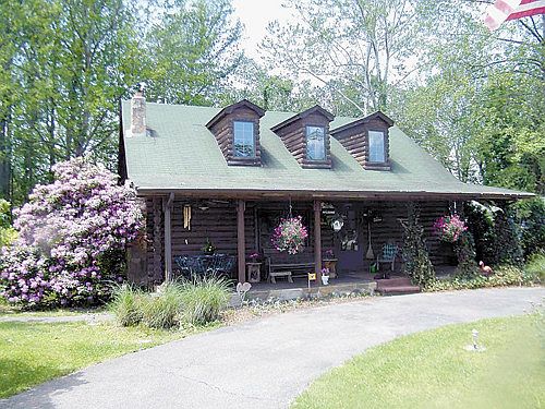 Circular driveway invites family and guests to this casual Heritage log home built in one of Cosby's prettiest areas known for the mountain views and the private waterfall and creek area available only to Stonebrook property owners. Full covered front porch w/ swing overlooks the landscaped yard w/ dogwoods and flowering cherry tree while the back deck enjoys huge blueberry bushes that produce 80 quarts of fruit a year! A birdlover's paradise and ideal for the hobby gardener. The home inc. a cozy woodburning stove for energy efficiency, as well as central h/a and the main floor has all you need for year around living inc. master, kitchen, laundry. Upstairs is a spacious loft and separate sleeping cove w hich is roomy enough for 3 full size beds - the grandkids will love it! the downstairs guest room also serves well as a home office or use the loft - lots of possibilities! The huge double garage is oversized and offers ample workshop space, plus storage and you'll find add'l storage outside. the deck is already plumbed for a hot tub and the sellers will negotiate leaving the hot tub so you can enjoy the private back yard! There is a cleanout for your RV. Sellers are leaving most furnishings, ask for details. The club house and monthly fee covers parking for your RV and the pool and tennis court are a plus. 2 lots are included which makes this log home perfect for year around living or second home retreats - no overnight rentals are allowed in Stonebrook but you can lease long term. sq. footage per tax records and should be verified if needed and photos to follow. agents, see addendum for information on home inspection