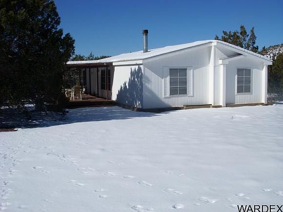 Manufactured Home with electric , septic , great well on 80 + 80 acres for a total of 160 acres , 5 fenced acres surrounding home with entry gates , two 80 acres side by side PIN#'s 352-10-033 in Mohave County + 301-16-003S in Yavapai County. Easy access about 6 mi off HWY 40 , suggest 4x4 in winter. Located about 35 miles from Kingman . Beautiful property ! Storage container included .