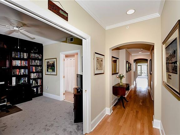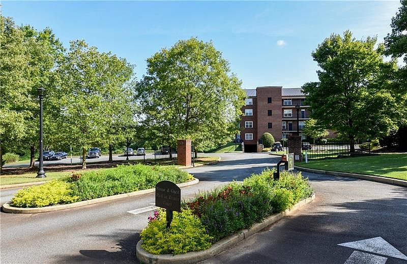 An awesome private community nestled in the heart of Roswell. Elevator from Garage provides One Level, Stepless Living. 2nd Floor End Unit with Breathtaking views of Vickery Creek, Downtown Roswell & Chattahoochee Nat'l Forest from your huge private covered porch. Hardwood Floors, New Carpet, Luxury Master Suite w/ Spa Bath, 2 Secondary Bedrooms each with Full Bath. Fireside Great Room, Custom Built Bookshelves, Chef's Kitchen w/Center Island, Opens to Great Room. Gated Swim/ Tennis. Storage Room & 3 parking spots. Constructed of Steel & Brick. Solid/Well Loved Home.