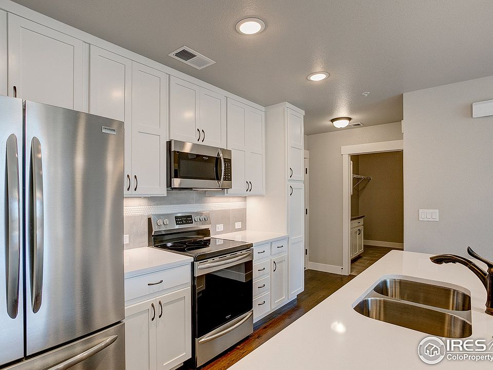 Quick move-in! Welcome to the North Shore Flats at Centerra by Landmark Homes. Lock & leave has never been so easy & secure! Single level ranch floor plans w/ elevator service, secured entry, high-end finishes, all w/ bright, open floor plans. Conveniently located close to shopping, banking, dining, medical facilities, outdoor recreation, & minutes to I-25. Master HOA & Metro District apply. Secure entry building, garages attached to an interior hallway, energy features such as high efficiency furnace & tankless water heater, & gorgeous designer selected standard finishes like engineered hardwood, quartz or granite counters, tile surrounds, under cabinet lighting, solid doors, stainless appliances & tile floors. Model open at 4128 South Park Dr. #100, Loveland 80538.