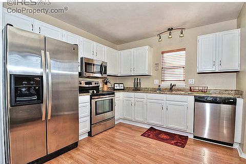 Move-in ready 2-story in District 20 *Almost everything new/updated *Spacious kitchen with new counters, stainless steel appliances, bay window & walkout to patio *Dining room with laminate wood floors & wood burning fireplace *Wood laminate floors in living room, kitchen, entry & dining room *Large master bedroom with 2 closets, ceiling fan & attached bath with custom tile & vanity *Newly finished basement with 2 bedrooms, 1 full bath & family room *Newer vinyl windows *New roof *Large lot on culdesac *Backs up to open space & park. *Fully fenced dog run on side of house *Fully fenced backyard *Insulated garage *Cement pad on side of house
