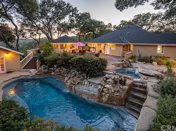 WEST TEMPLETON PARADISE! This breathtaking West Templeton estate can truly be described as... paradise! Unparalleled privacy and breathtaking views are enjoyed from both the 2,400 SqFt main residence and separate 700 SqFt guest home - both of which are tastefully nestled in a stunning oak forest. The list of memorable and custom amenities here is unending, including a solar heated free-form rock pool with cascading waterfalls, and an adjacent game/bar room to keep the fun flowing well into the night. There is also an octagonal artist studio designed to take in the panoramic vistas of the coastal mountain range - and all of this surrounded seemingly endless entertaining and hang out areas. A built-in Santa Maria style BBQ, two spas, extensive exterior lighting and sound...you get the idea. You will also find a 3 car garage under the guest house plus a detached 2,000+/- SqFt shop (with car lift) for the toy collection. A private, electric gated entry, extensive camera and security protection systems, perimeter fencing, separate solar for both electric generation and pool heat all further add to the appeal of this dream property. The 30+ acre parcel is to die for, and includes an even higher hilltop location for another future residence should you wish, as well as a meandering creek and a few natural springs. A number of high-end vineyards and residential estates surround the site, which happens to be located within the sought after 'York Mountain AVA'. Should you wish to plant your own estate vineyard, we estimate one could develop around 10 acres in vines - mostly in the areas previously cleared and planted in old Pistachio trees. Be sure to check out the attached video to see additional detail about this one-of-a-kind offering.