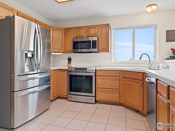 Stay connected with this open floor plan home with multiple main floor social spaces. Great northwest Loveland neighborhood with easy access to Fort Collins. Step inside from the covered front porch and take a deep breath in the vaulted living room. The open kitchen has a two-tiered counter with bar seating and lots of room to make meals to remember. Relax in the cozy family room with fireplace or sit out back on the raised deck or ground floor patio and look out over the greenbelt and all of Loveland. The upstairs has four bedrooms including the master which has a fully updated en suite bathroom! There's an upstairs laundry conveniently located near the bedrooms as well as a shared full bath. Downstairs you have the finished basement with rec room and a private bedroom as well as a full bath. Plenty of room for hobbies and entertainment! Enjoy walking trails across the nearby open space connecting with Mahaffey park. Easy drive to Devils Backbone and Horsetooth reservoir. LOW HOA fee.