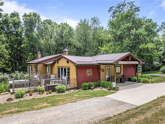 Secluded retreat with additional cottage. It boasts 4 separate suite areas great for working from home, in-law suites or countless possibilities. Starting in 2012 it was completely redesigned and rebuilt using high end finishings. Aesthetic designs were used from floorings to ceilings. Wheel chair accessibility or aging in place. With 9 parking spaces and 1 large parking for RV or motorhome to add to the 5 garage spaces you will have plenty of parking. Amazing drive through heated attached garage with built in pressure washer, cherry cabinetry with granite tops. The open design main dwelling is a work of art with all your needs on one floor. Office area in living area allows for computer use while still near activities in home. Stone wood burning fireplace has 200 year old barn beam mantle. Cottage has kitchen living full bath and two areas perfect for sleeping or storage. Private trails with a large clearing with a natural spring house feeding a small farm pond.