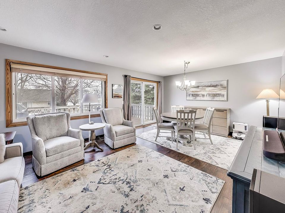 This beautifully updated Savage home is move-in ready and features three spacious bedrooms, with stunning laminate wood flooring throughout the upper level. The kitchen is a standout, filled with natural light thanks to a large picture window. It boasts newer stainless steel appliances, including a gas stove, custom center island, brand new porcelain countertops and subway tile backsplash, freshly painted cabinets with updated hardware. The main bathroom offers double sinks, a separate tub, and a tiled shower, with direct access to the primary suite. The lower level is perfect for entertaining, with two large spaces, one featuring a cozy wood-burning fireplace. The furnace and air conditioner were both replaced in 2020, and this year the sliding door and water softener were replaced. This home has it all. Don’t miss out—come see it today!