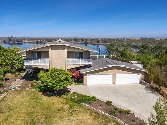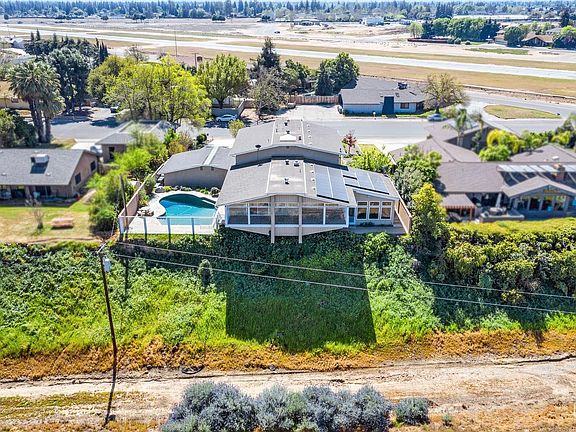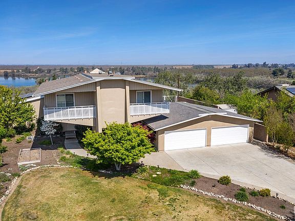 Discover the architectural uniqueness of intricately designed 5-bdrm, 4-bath home that is nestled along the scenic San Joaquin River w/a gorgeous bluff view & breathtaking views of Milburn Pond & surrounding bluffs from the comfort of your own home. The home has many areas of focal point views of surrounding nature & very relaxing & inviting. It's a great home for hosting and an Aviator's dream conveniently located just off the Sierra Sky Park runway. The home has owned solar w/a generous 4 car garage w/extra storage space. The kitchen has built-in gas appliances & a convenient island sink. The lower level boasts a spacious secluded master bedroom w/a private deck overlooking the bluffs & built-in bookshelves. The master bathroom w/plenty of counterspace, a jetted bathtub, separate shower stall, and a walk-in closet. Upstairs you will find additional bedrooms, including a 2nd master bedroom. Relax with a built-in pool, shaded lounge areas, & a convenient pool house.Call for a tour!