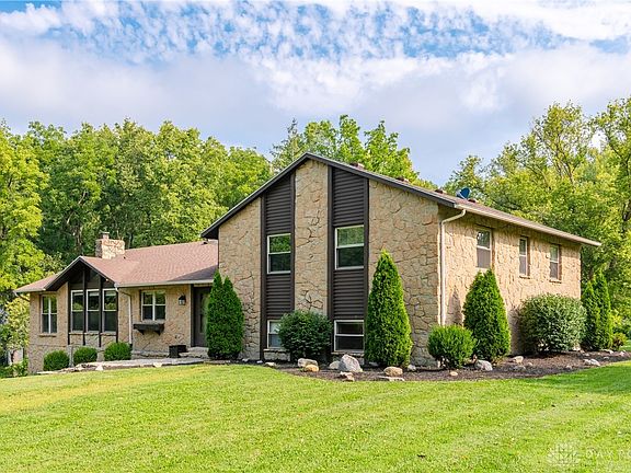 The best of both worlds- a private wooded 1 acre lot that's only minutes away from shopping, entertainment, major interstate, and WPAFB. This quad-level home offers 3,000 sq ft of living space with additional storage in the LL basement and garage. FR with a Cathedral ceiling and a panoramic view of the wooded lot. Large Master suite with walk-in closet and beautiful newly renovated ensuite bath. The Master Bath has heated floors with an audio and lighting system. The kitchen has new stainless steel appliances and a farmer's sink. Oversized rec room for all your entertainment needs. Large Bonus room that could be used for an office, playroom, game room...whatever you desire. Enjoy evening cocktails from the deck of your private tree-lined property. The property has had many updates including 4 renovated bathrooms, new carpeting main level, and a tankless water heater. See the attached list for all!