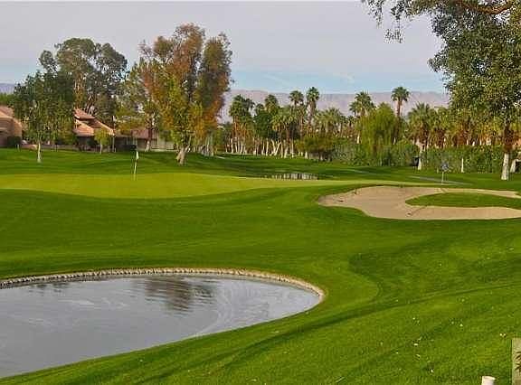 This condo sparkles with pride of ownership. The slightly elevated location, above the lake of hole #5 allows you to hear the relaxing sound of the water splashing on the lake, while sitting on the covered patio. The windows and slider have been replaced with energy efficient Low E. Also the heating and A/C unit was recently replaced. This cozy condo if offered turnkey with nicely appointed furnishings. The kitchen features stainless steel appliances, new cabinets and granite slab counters. The washer and dryer are new and inside. No need to purchase a golf cart it is also included with a full price offer. Opportunity is knocking on this beauty don't miss out! Oasis Country Club offers golf, tennis, an 18 hole putting course, 2 Restaurants, Lounge, fitness room, women & men's golf club, exchange library/card room, and other social groups. This community is one of the best kept secrets in the Valley, come and see for yourself!