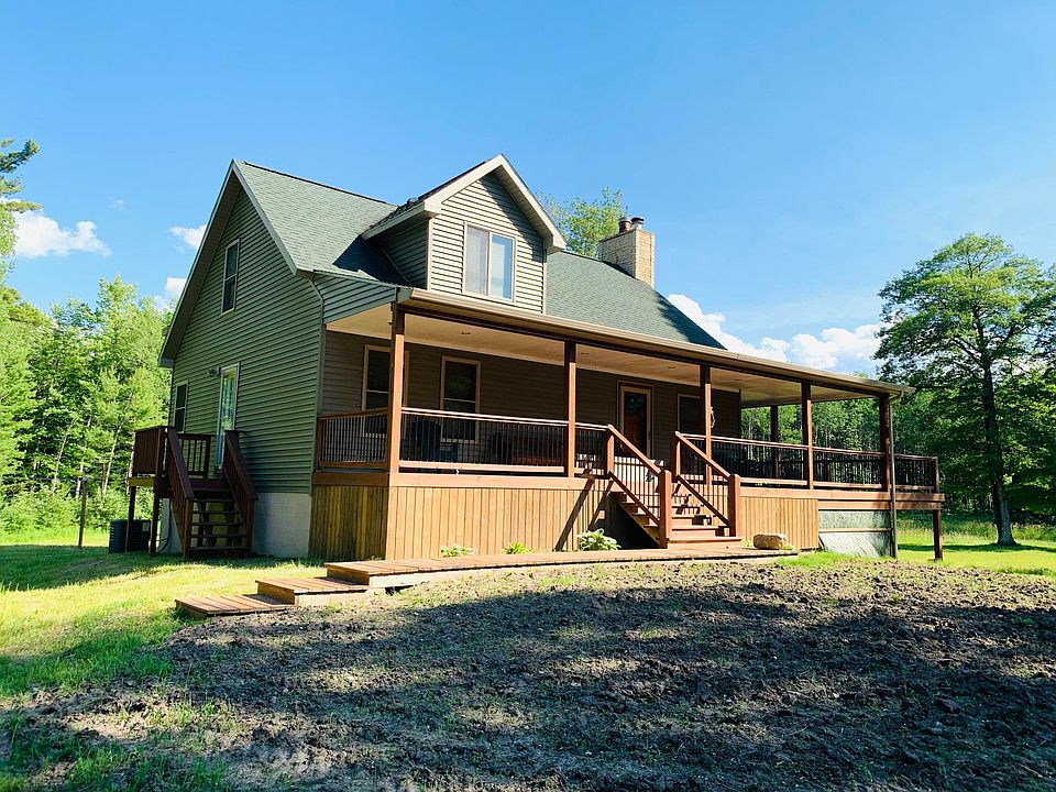40 acres m/l, nicely wooded with pond and this 1400 sq ft home with full partially finished walk out basement. Home is selling mostly furnished including stainless steel kitchen appliances and features open knotty pine ceilings, bamboo, tile and cork floors, along with recessed lighting. Master bedroom in loft with master bath featuring cedar, over- sized tub and separate tile shower. A/C, wrap around covered porch, and outdoor fireplace. 30x40 2 story out building with electric and cement floor. Located in the Curran area on private road, secluded setting. $228,500.00 MLS# 319948