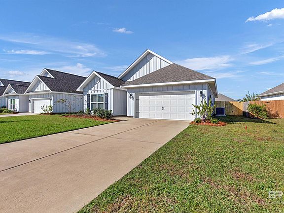 Welcome to South Alabama's premier 55+ Active Living community! This "move-in ready" 3-bedroom, 2-bathroom cottage home is waiting just for YOU! Ideally located off County Road 8, between Foley Beach Express and Highway 59, you’re only MINUTES away from everything!This home features a spacious open floor plan, with each bedroom offering its own private area for maximum comfort. The kitchen is a chef's dream, complete with stainless steel appliances and sleek granite countertops. The oversized dining area is perfect for hosting family and friends. Natural light fills the home, creating a warm and inviting atmosphere. The large living room boasts three windows that provide a beautiful view of the backyard.The primary bath is an oasis with a zero-entry, tiled shower, double vanities, a generously sized water closet, and a full linen closet. This unique layout also offers access to the laundry room from both the expansive primary closet and the rear entry near the garage. Plus, this home is Gold Fortified, with a certificate available for your peace of mind.Step outside to the lovely back patio, your new favorite place to enjoy beautiful filtered sunsets. With all lawn care included in the HOA fee, along with access to a putting green, pool, and pickleball courts, you can relax and enjoy life without the hassle of yard work. An irrigation system is also in place to keep the grounds lush.Just a short golf cart ride away, The Villages at Craft is close to the Craft Farms Golf Community, home to two Arnold Palmer-designed golf courses. This home truly has it all—there’s too much to list! Buyer to verify all information during due diligence.