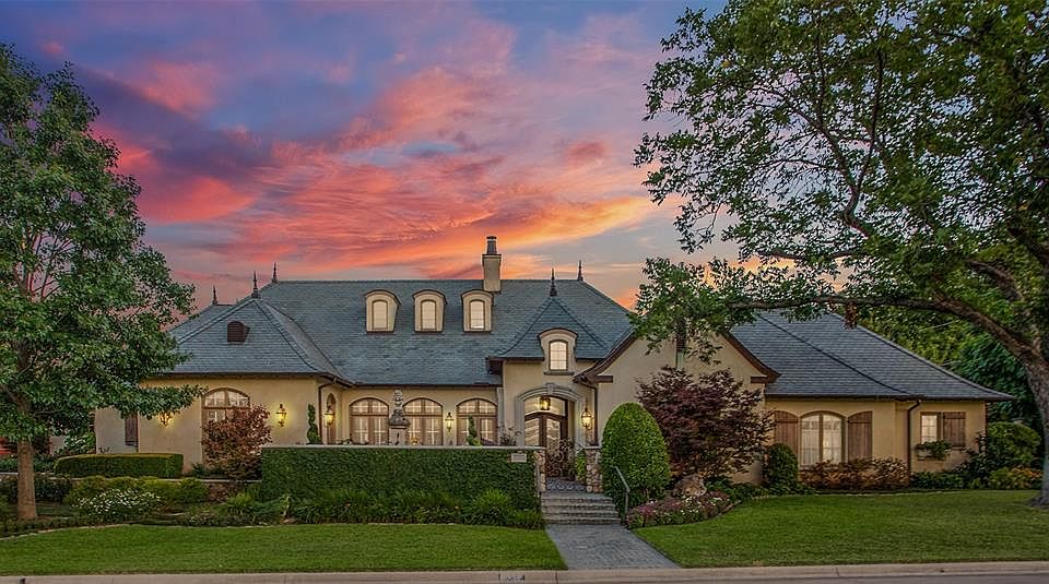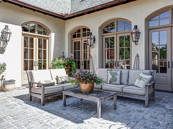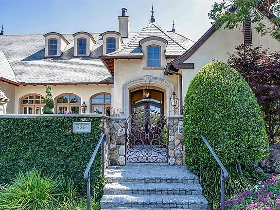 Exquisite French Chateau situated across from River Crest golf course. This custom designed home, completed in 2009, offers added vintage details. Unique custom-built kitchen with octagonal antique tiles reclaimed from France covering kitchen floors. Island is an old French farm table from the 1830's. Living room with 32 foot vaulted ceilings accentuated by cedar beams & custom iron chandelier leads to open concept kitchen. The wine room, equipped to hold 2600 bottles of your favorite collections is tiled with Jerusalem stone reclaimed from buildings in the heart of Jerusalem. Beautifully manicured landscaping surrounds the cozy & spacious outdoor entertaining areas.