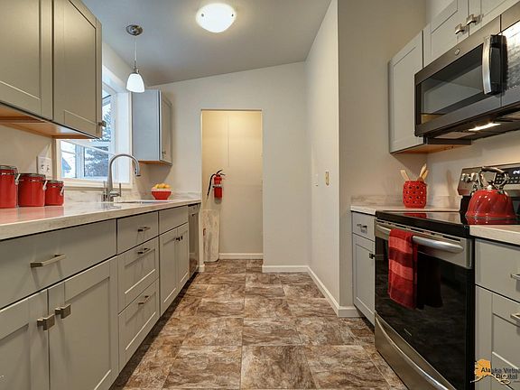 South facing home nestled in West Anchorage. Luxury vinyl plank flooring throughout and updated kitchen with new cabinets and counter tops, all stainless-steel matching appliances, and a large pantry. Upgraded lighting, windows along with an updated full bath. Set back south of Dimond it is close to schools and shopping and Kincaid park for recreation. Treed, fenced yard wraps around the property