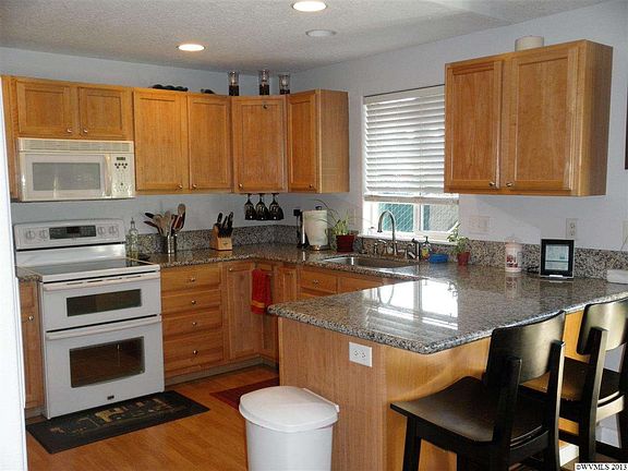 Bring your family to this lovely 4 BR home on a quiet cul-de-sac. Lrg vaulted great room that is open to the kitchen which has been upgraded w/ slab granite. Newer appliances, including a dbl oven & an extra-large deep ss sink. Patio off kit for BBQ's & another off MBR. Master Suite has a great walk-in closet. Secondary bedrooms all have mirrored closest doors. New laminate flooring in great room. Int has been freshly painted. Finished garage, low maintenance yard w/ UG sprinklers. Close to shopping & I-5.