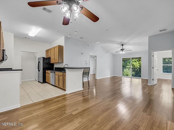 Move-in ready condo with a one-car attached garage located in the heart of Jacksonville just minutes to everything! The Danbury floorplan offers an open concept with upgraded granite countertops in the kitchen and bathrooms. Bamboo floors throughout. All appliances convey. The washer, dryer, and dishwasher are all new within the last year. Take in the peaceful preserve views from the balcony or either bedroom. The unit is located in building #5 which is a premier location with the longest driveways in the community that allow for ample parking. This is a gated community with an amenity center that includes fitness center and community pool.