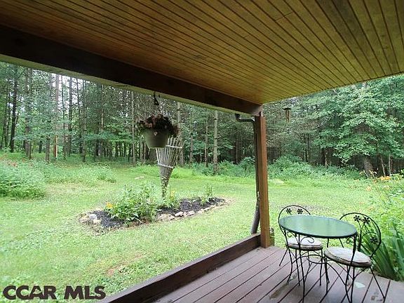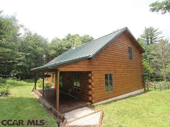 This beautiful, well-kept log home sits on 15.69 acres with its own pond and small barn. The first floor features a large open floor plan with beautiful wood floors, lots of natural light, and access to the spacious back deck overlooking the forest and pond. The loft area provides additional space for an office or den. New standing seam metal roof installed in 2013. Lots of privacy but only a short commute to State College. A great option for a second home or vacation spot. Horses permitted!