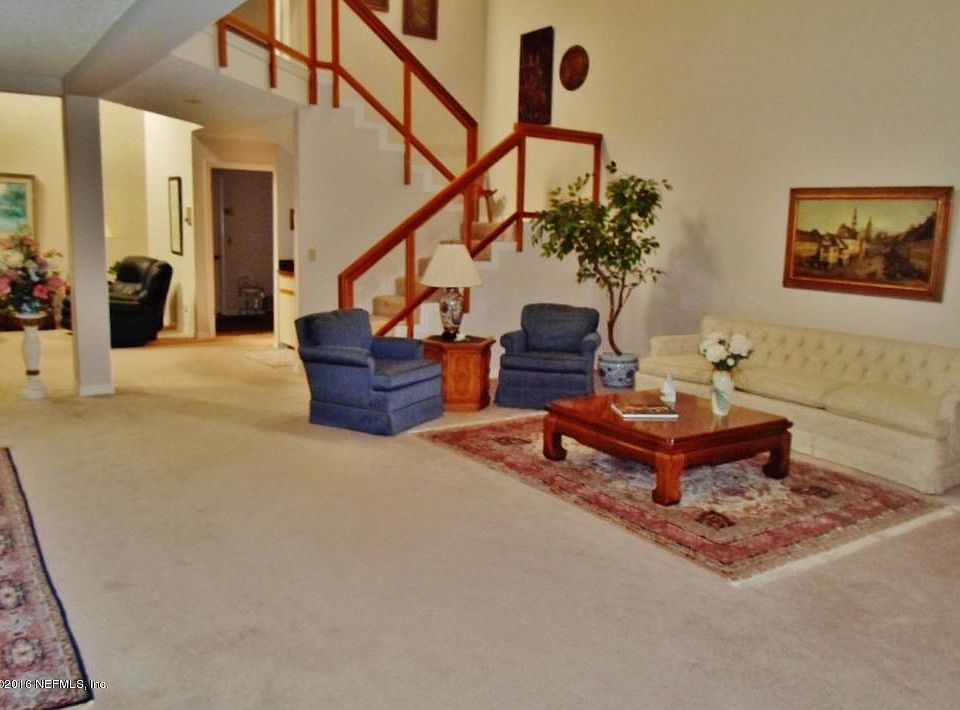Fort Caroline's ''hidden'' jewel. Small enclave of brick contemporary condo homes. Formally the original model home with soaring ceilings, celestral windows for privacy and scenic views of Hidden Hills Country Club, golf course and lake. Original owner has spared no expense with updates and modifications. All bathrooms have been updated with tile and solid cultural panels in the showers for easy care. Windows and doors have been replaced with top of the line Pella double hung windows and atrium doors that lead to a gracious size open private patio with brick pavers.Master bedroom suite is down stairs. Custom mirror closets lead to the spacious bathroom. Raised vanities, separate shower and over-sized garden tub designed for quite relaxing time.Stairs and upper level have plexiglass inserts to add to the open feeling. Bedroom 2, could be a master bedroom, large and spacious with spectatular views of the lake,rolling golf course and HH club house. Bedroom 3 overlooks the open area of the great room, dining room and sitting area. Bedroom 4 could be an office or craft room. A large storage area is also accessed from the upper level and could be converted to another room if needed. Top of the line appliances in kitchen and laundry, granite counter tops, built in oven,solid surface counter top range, microwave and dishwasher. Original covered porch was converted to a charming morning room open to kitchen and great room. Great home for entertaining with wet bar and open flow.