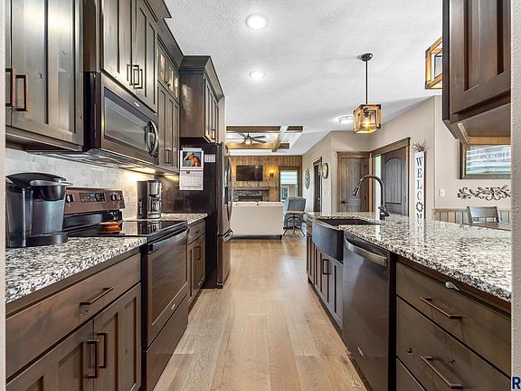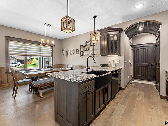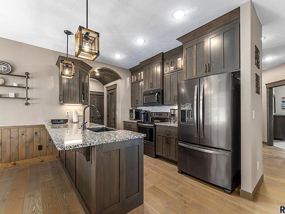 Stunning 6 Bedroom, Ranch, Walkout, located in the popular NW side of Sioux Falls w/ easy access to I90 & I29, The main floor features an open concept with rustic finishes, a stunning coffered ceilings in the living room with a gas fireplace. Enjoy amazing sunsets off the large, covered deck. Enjoy the convenience on 3 bedrooms on the main floor, along with main floor laundry located off the mud room with a pass through to the primary walk-in closet. The primary en suite features double vanities, along with a tile walk in shower. Downstairs boast a large family room, 3 additional bedrooms, and laundry hook-ups. The sprawling back yard with no direct neighbors offers plenty of room to run. To top all of it off the oversized 3 stall garage has epoxy flooring, hot and cold water hook ups, drain, and gas heater.